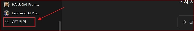 챗GPT 사이트에 접속합니다. 좌측에 GPT탐색이라고 써진곳은 눌러줍니다.